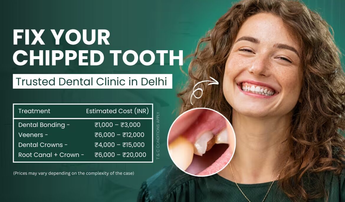 A chipped tooth can happen at any time — while eating, due to an accident, or even from grinding your teeth at night. If you’re in Delhi