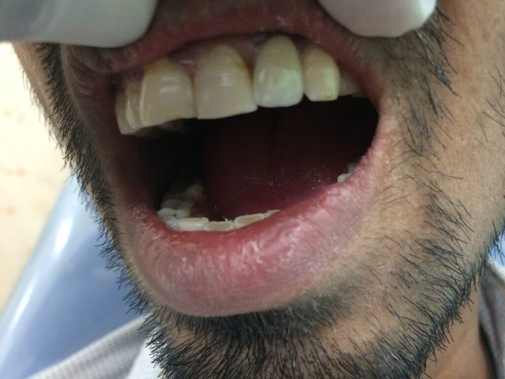 A 50-year-old male visited our dental implant clinic with several decayed and mobile teeth in both arches. He had no systemic illness. Patient was reluctant to wear removable dentures and wanted fixed teeth.